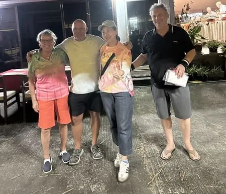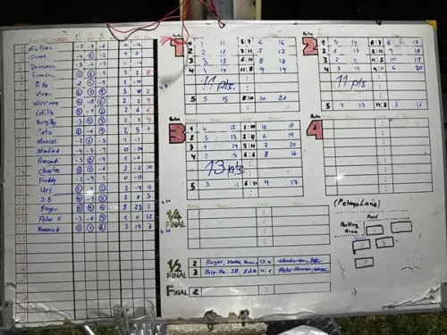 Besonders erwähnenswert war die erfreulich hohe Anzahl mitspielender Thai-Partnerinnen. Einige von ihnen hielten zum ersten Mal überhaupt eine Pétanque-Kugel in der Hand, fanden jedoch nach anfänglichem Zögern rasch Gefallen am Spiel und gingen mit sichtbarer Begeisterung im Spielgeschehen auf.